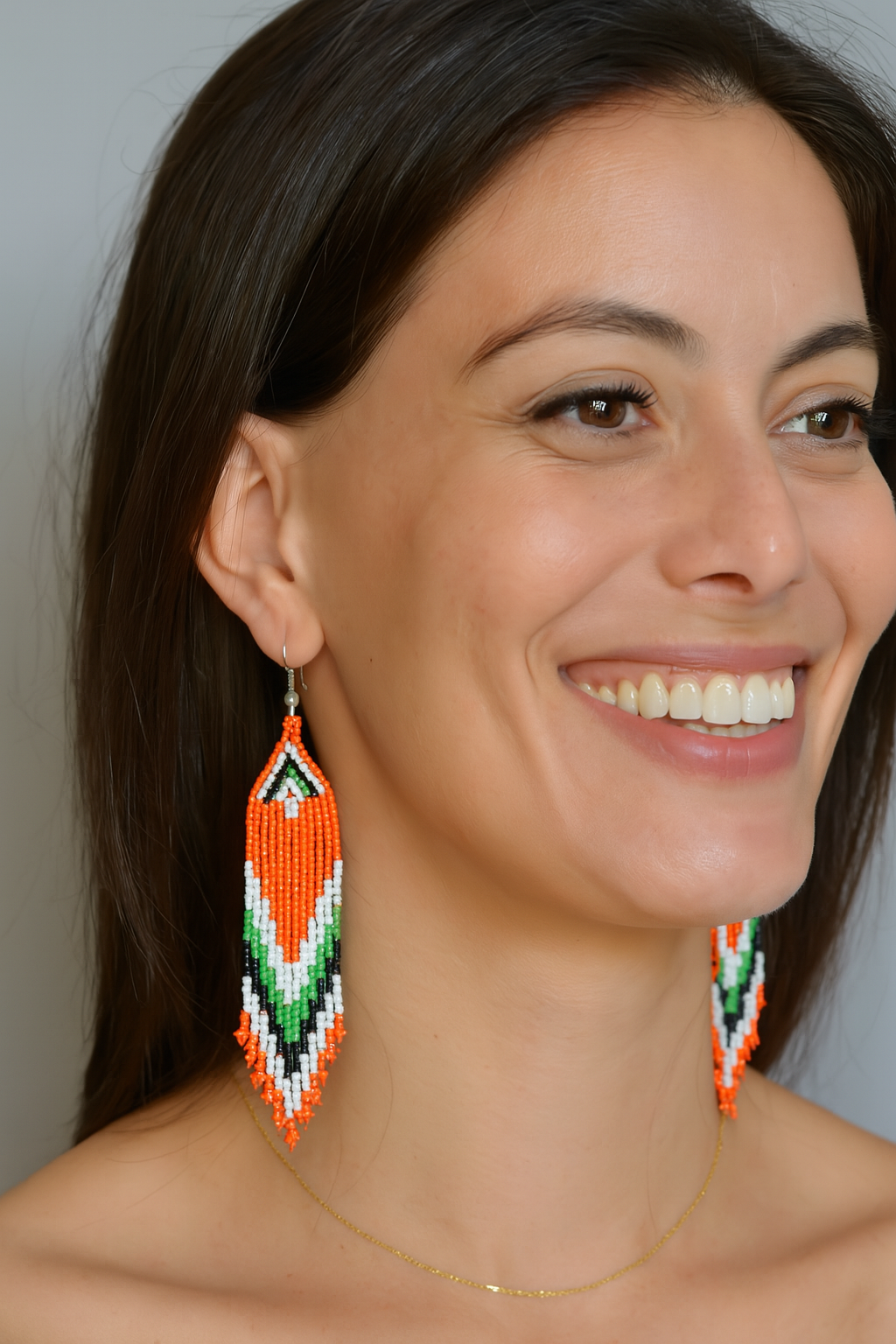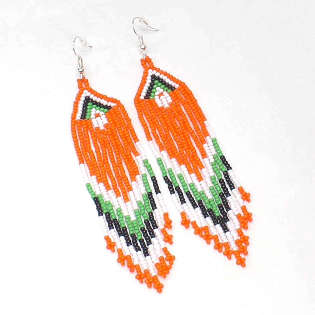 Handmade Orange & White Beaded dangle Earrings
