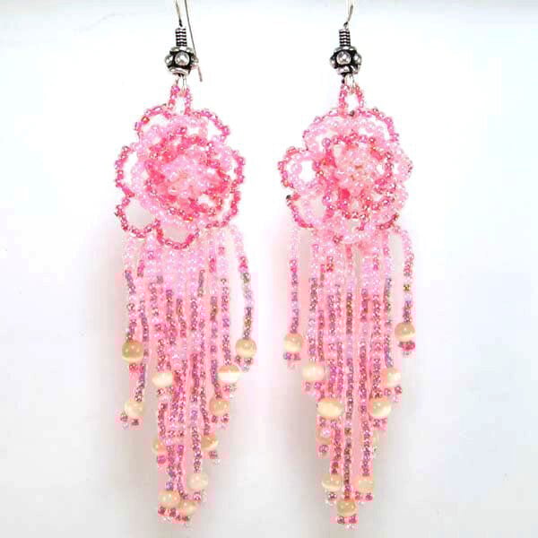 Pink Floral Cascade Beaded Earrings