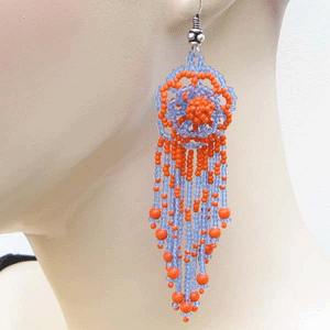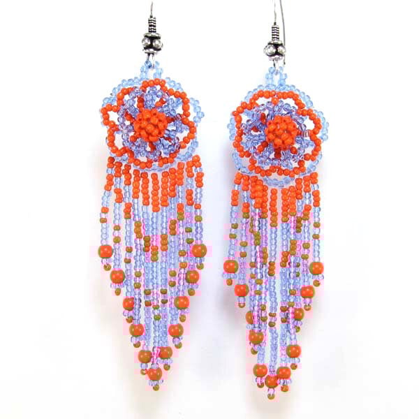 Handmade Orange & Purple Beaded Flower Earrings