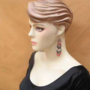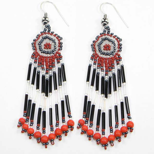 Handmade Beaded Red Black Bugle Seed Bead Earrings