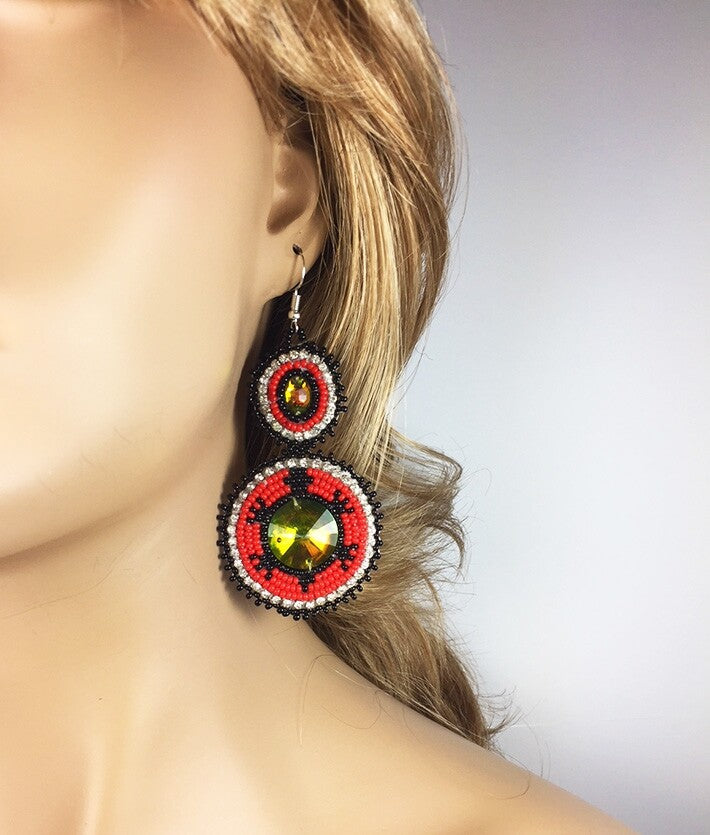 Beads: Glass Czech Seed Beads, Weight: 12 Grams, Length: 3.75 inch including Ear wire, Width: 1.75 inch