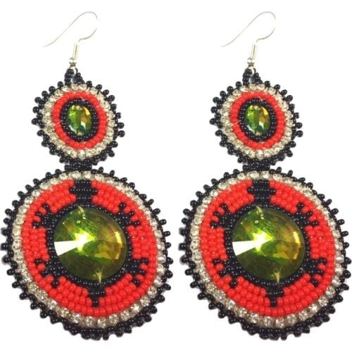 Handmade Beaded Red Black Turtle Dangle Fashion Hook Earrings
