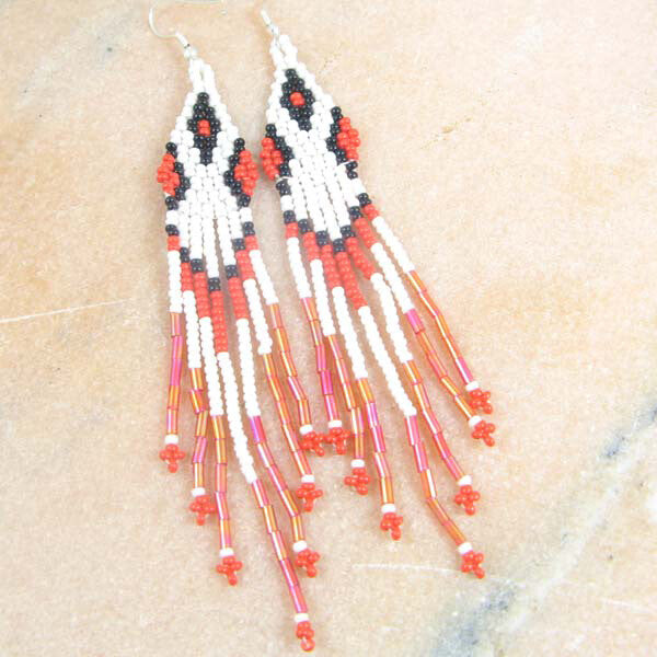Handmade Beaded Red Bugle Seed Beaded Earrings