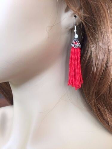 Beaded earrings handmade using small 11/0 czech seed beads.