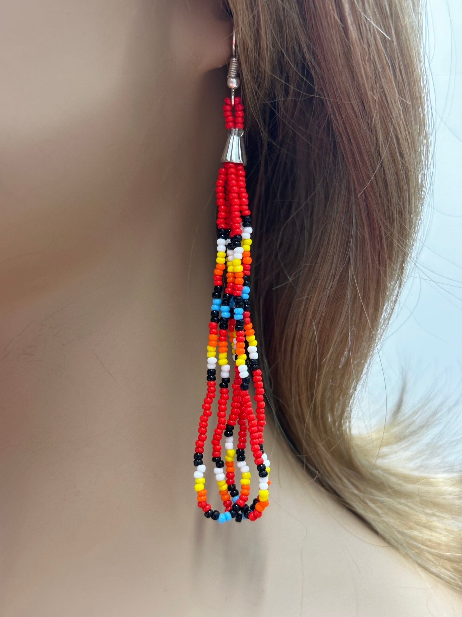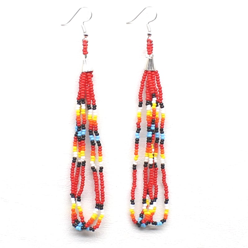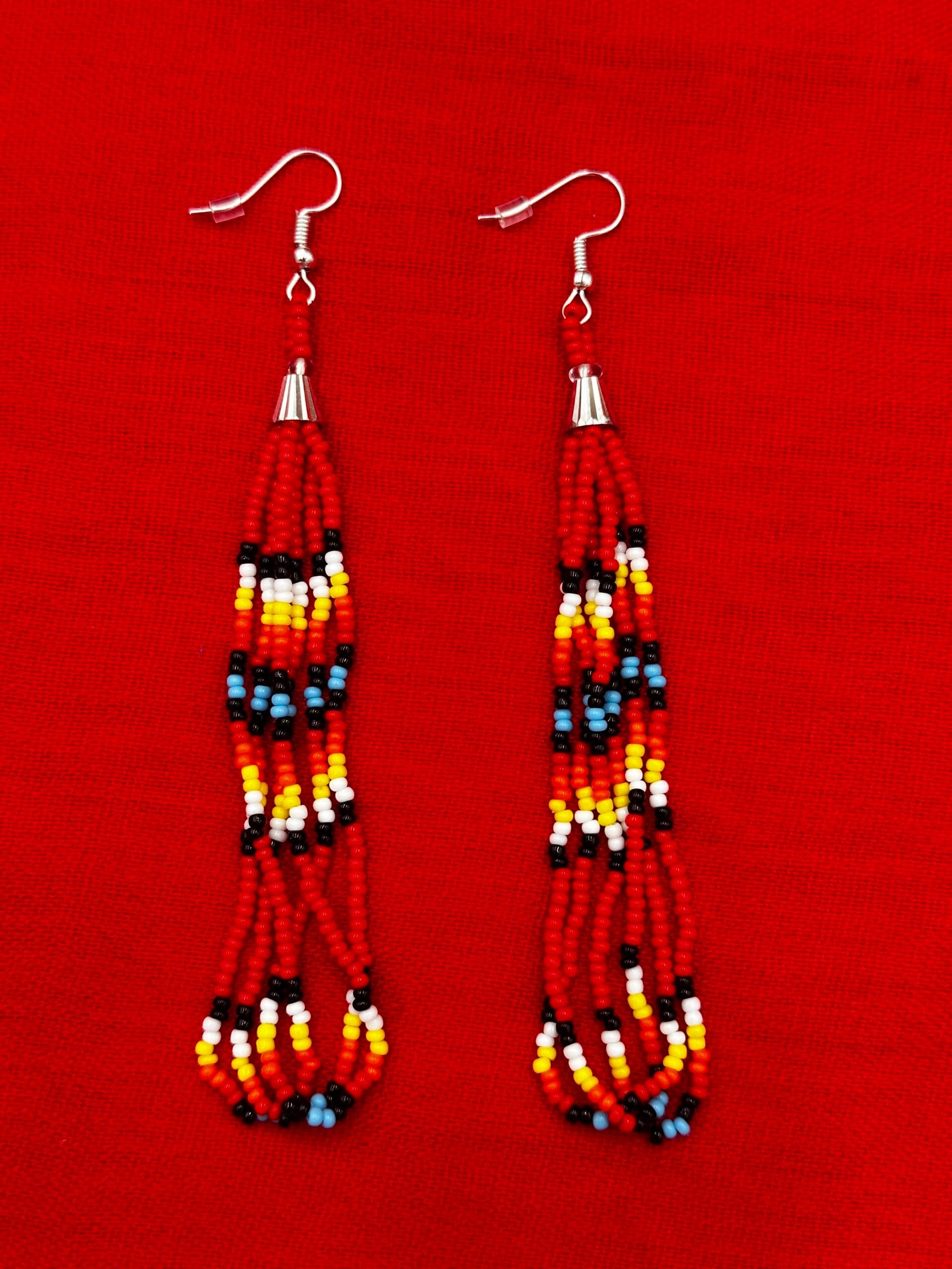 Handmade beaded Red long hook earrings