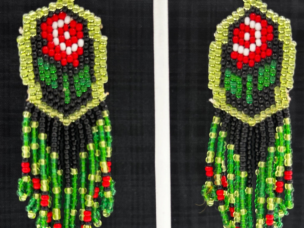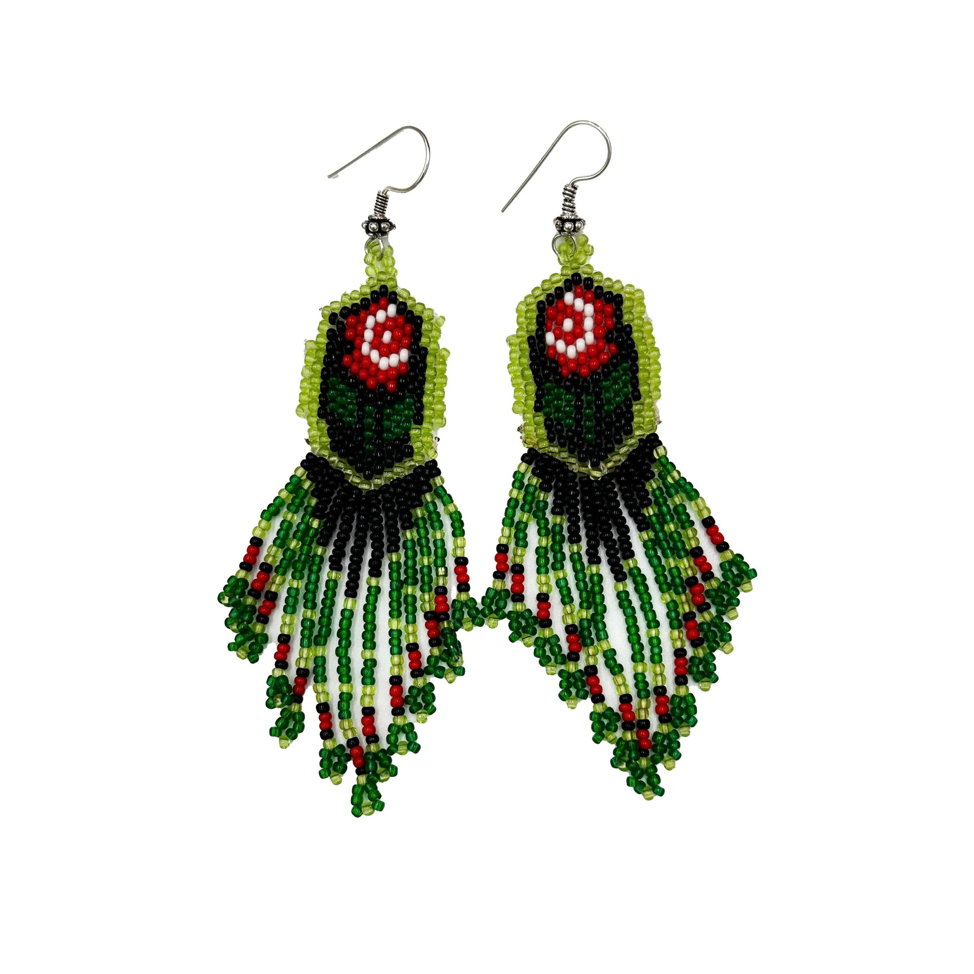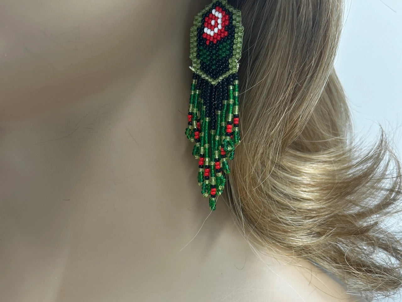 Handmade beaded rose pattern drop/ dangle earring, made with Czech beads.