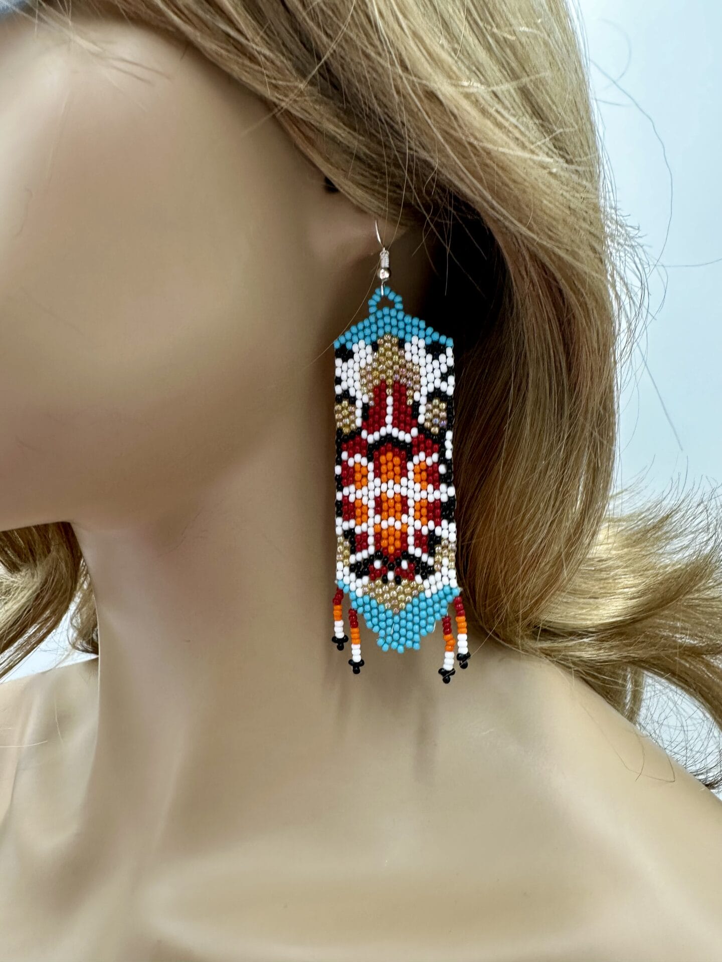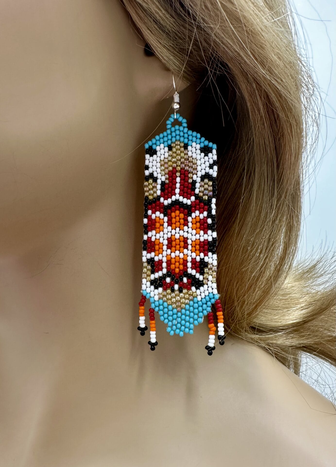 These beautiful handmade seed bead turtle pattern earrings are a unique and colorful addition to any outfit. Made with Czech beads and a silver finish, they are lightweight and comfortable to wear.