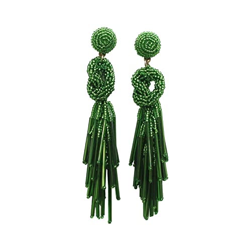 Handmade Beaded Solid Color Post Statement Earrings for Women Girl All Season 4 inch Long (Green)