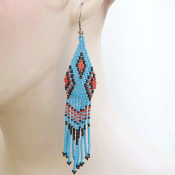 Cyan Blue & Red Ethnic Beaded hook Earrings