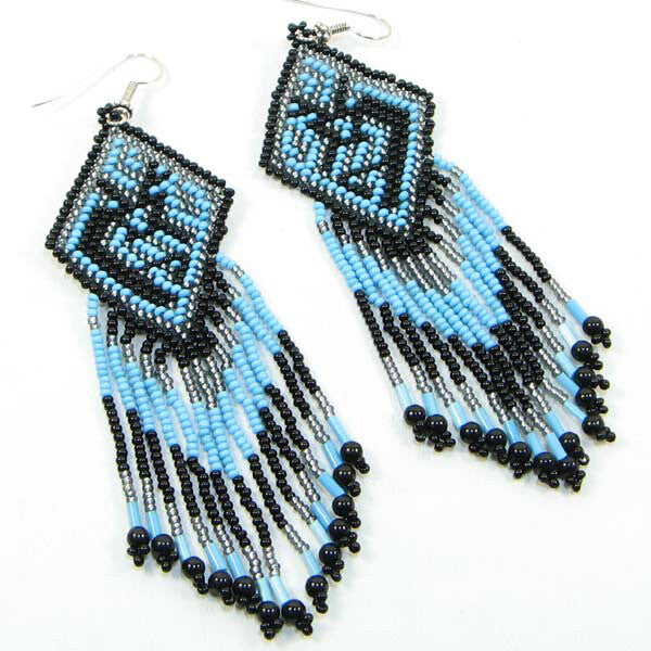 Handmade Beaded Turquoise Blue Seed Bead Kokopelli Earrings