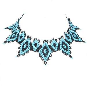 Handmade Beaded Turquoise Blue Statement Necklace Earrings Set