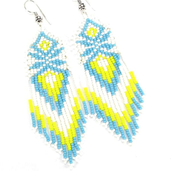 Handmade Beaded Turquoise Blue White Seed Bead Big Earrings