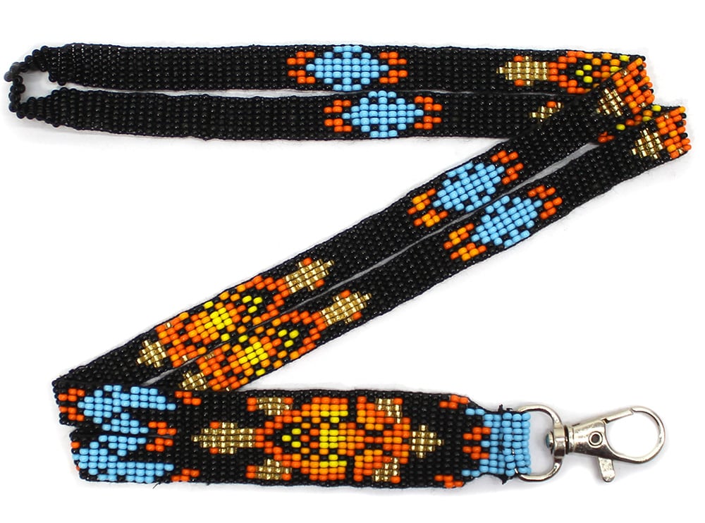 Handmade Beaded Turtle Pattern Black Orange Gold Lanyard - 33.5 inch