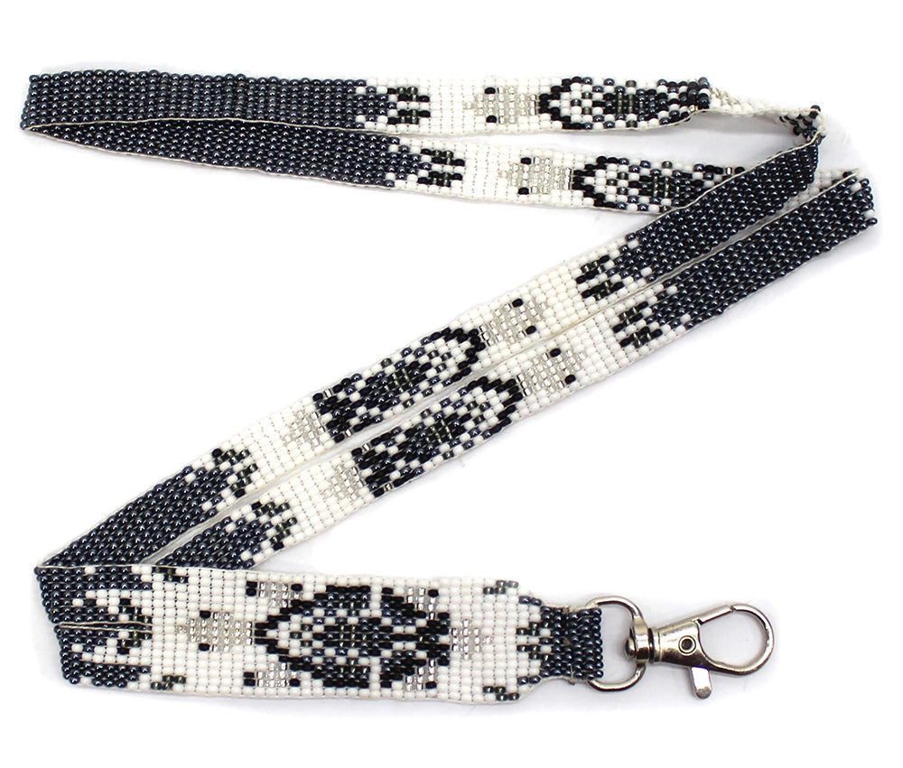 Handmade Beaded Turtle Design Grey White Lanyard - ID Holder, Eyeglass Holder, Key Holder