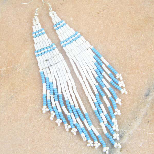 Handmade Beaded White Bugle Seed Bead Earrings