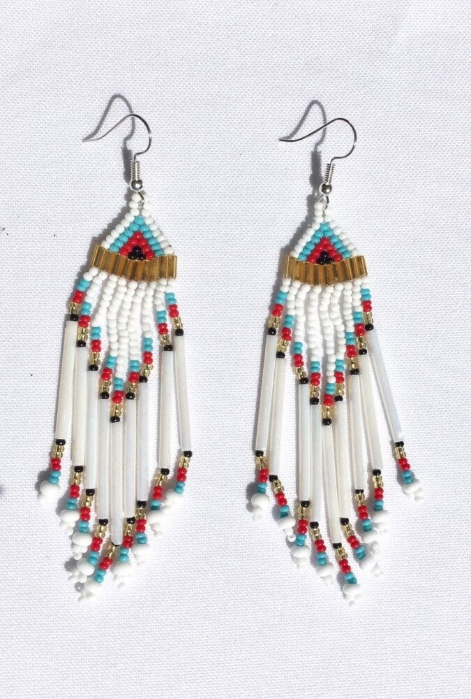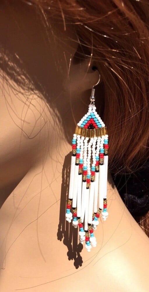 Beaded earrings handmade using small 11/0 czech seed beads.
