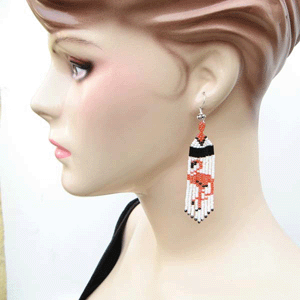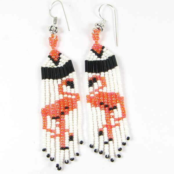 Handmade Beaded White Pink Seed Bead Flamingo Earrings
