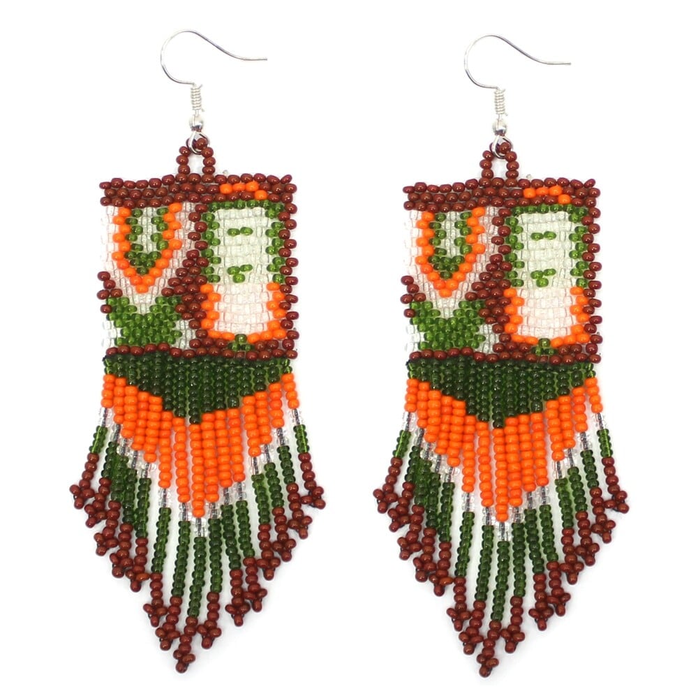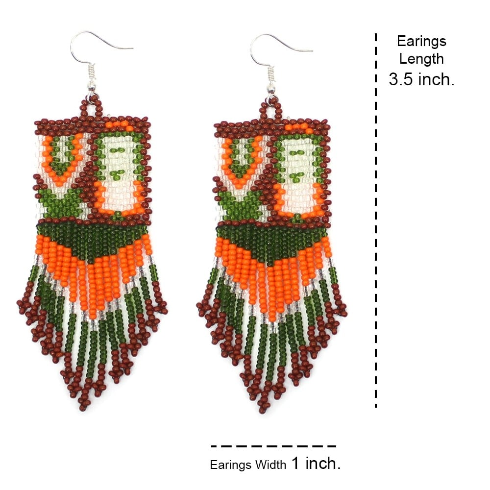Handmade Beaded Yei Dancer Orange Green Seed Bead Big Earrings