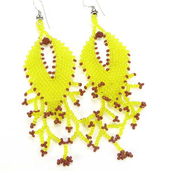 Handmade Beaded Yellow Seed Bead Big Earrings