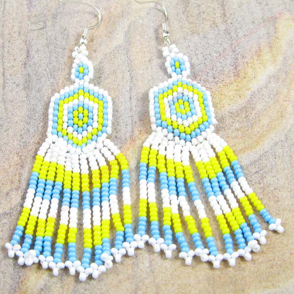 Handmade Beaded Yellow Seed Bead Earrings Chandelier