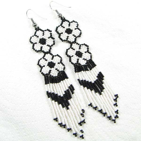 Handmade Beadwork Beaded White Seed Bead Flower Earrings