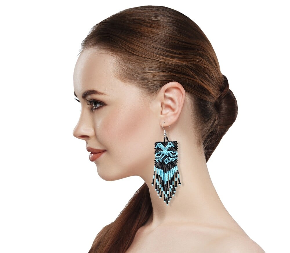 Handmade Black Blue Seed Bead Eagle Beadwork Choker Bib Necklace