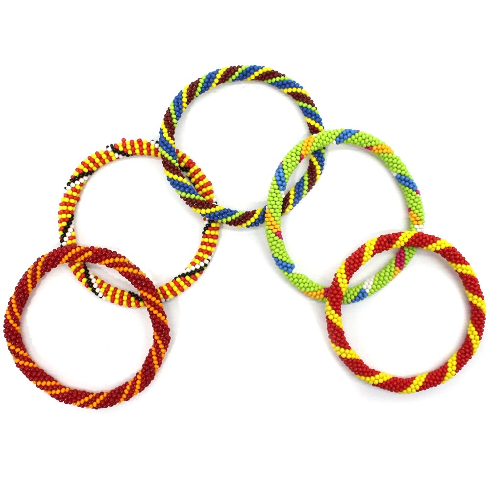 Handmade Red Yellow Green Seed Beaded Crochet Bracelet