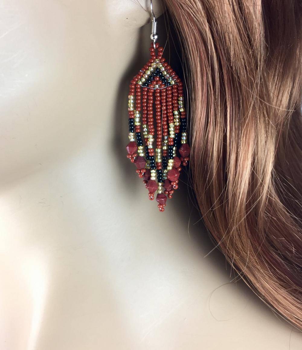 Handmade Small Maroon Beaded Fashion Earrings