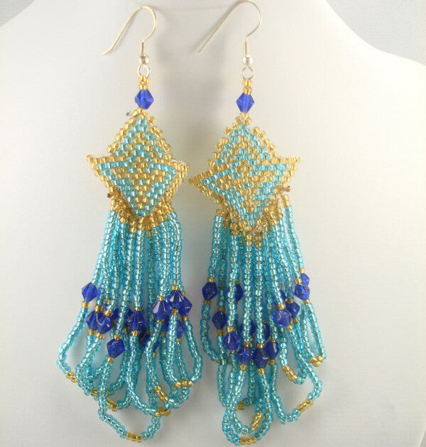 Indian Seed Beads Blue Topaz Tone Earrings 3.5 Inch