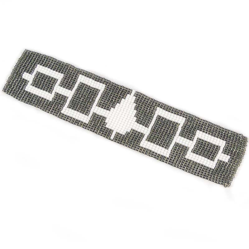The Iris Grey White Seed Beads Hiawatha Beadwork Beaded cuff adjustable Bracelet Leather is a stunning piece of handcrafted jewelry. Made with uniform Czech beads and suede leather in the back, this bracelet features a beautiful iris grey and white seed bead pattern. The adjustable cuff design ensures a comfortable fit for wrists of all sizes. With a weight of 44.0 grams and a length of 6.5 inches, this bracelet is both lightweight and versatile. The max width of 1.25 inches adds a bold and statement-making touch to any outfit. Perfect for accessorizing casual or formal looks, this bracelet is a must-have addition to any jewelry collection.