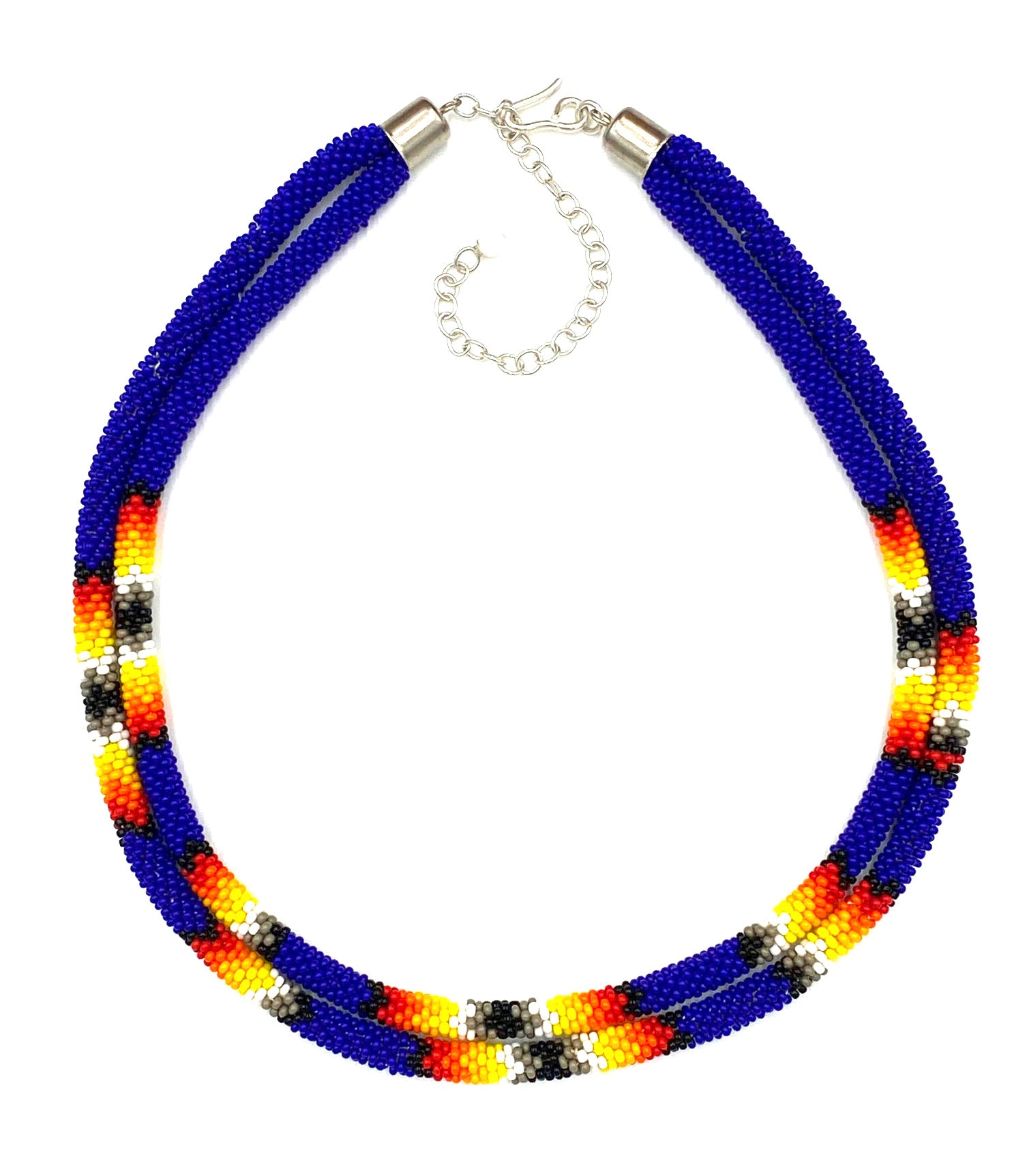 Native American Style Beaded Double Strand Rope Necklace - Deep Blue Fire