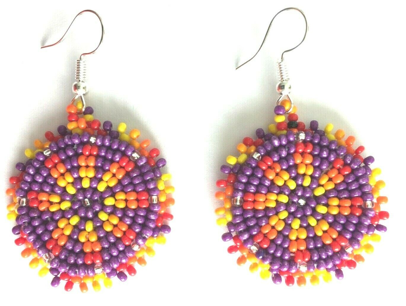 Purple Color Beaded round shape earrings beautifully hand made with Czech Seed Beads.