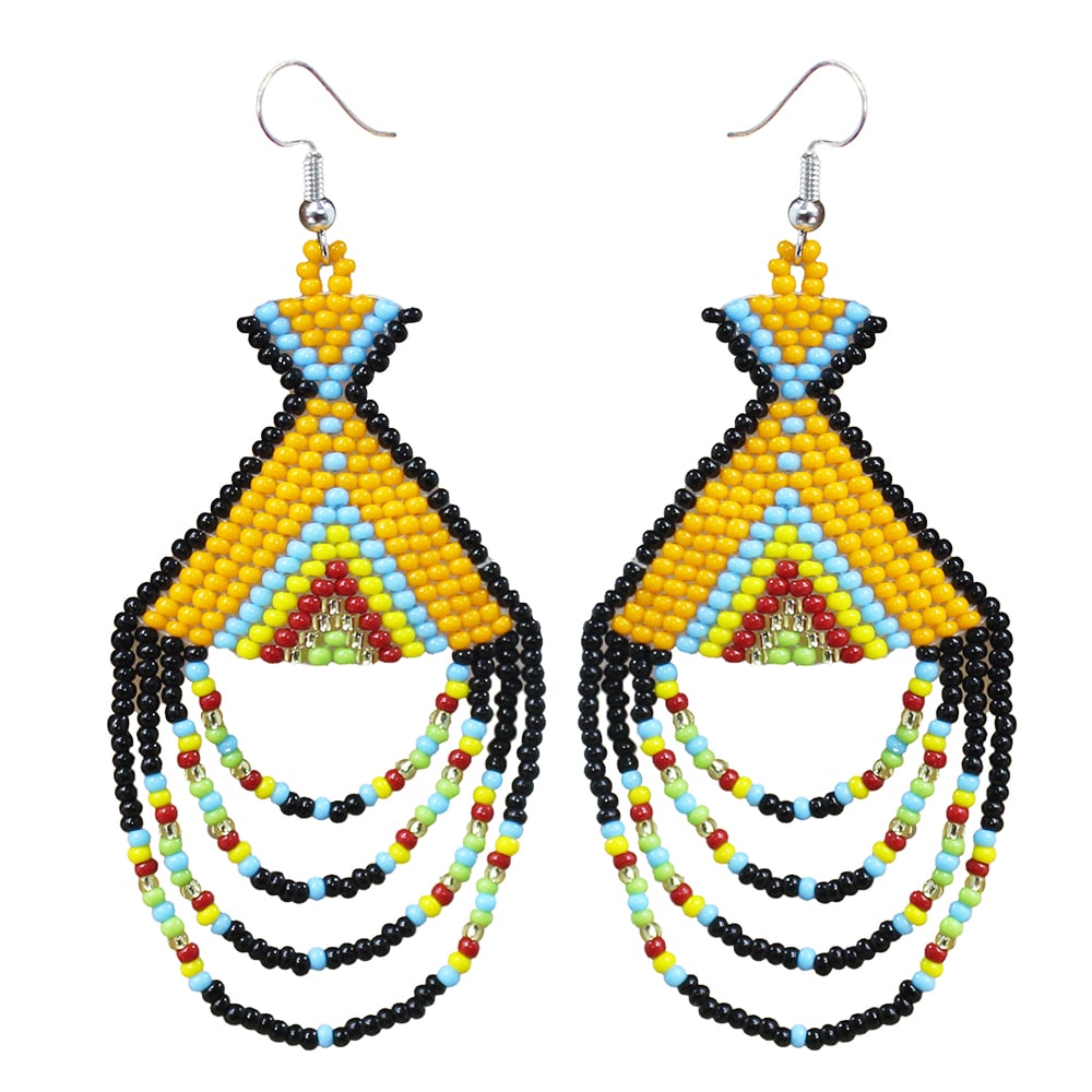 Handmade beaded tepee design hook earrings made with Czech premium beads size 11/0.