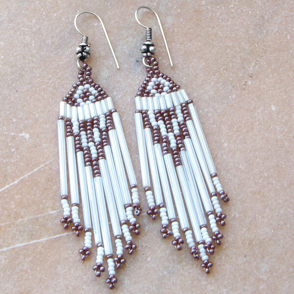 New Handmade Brown White Bugle Seed Beads Beaded Fashion Hook Earrings
