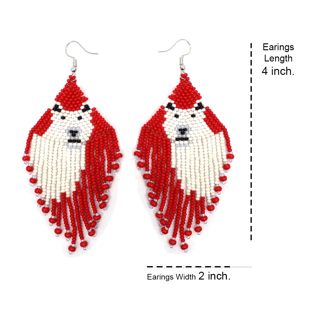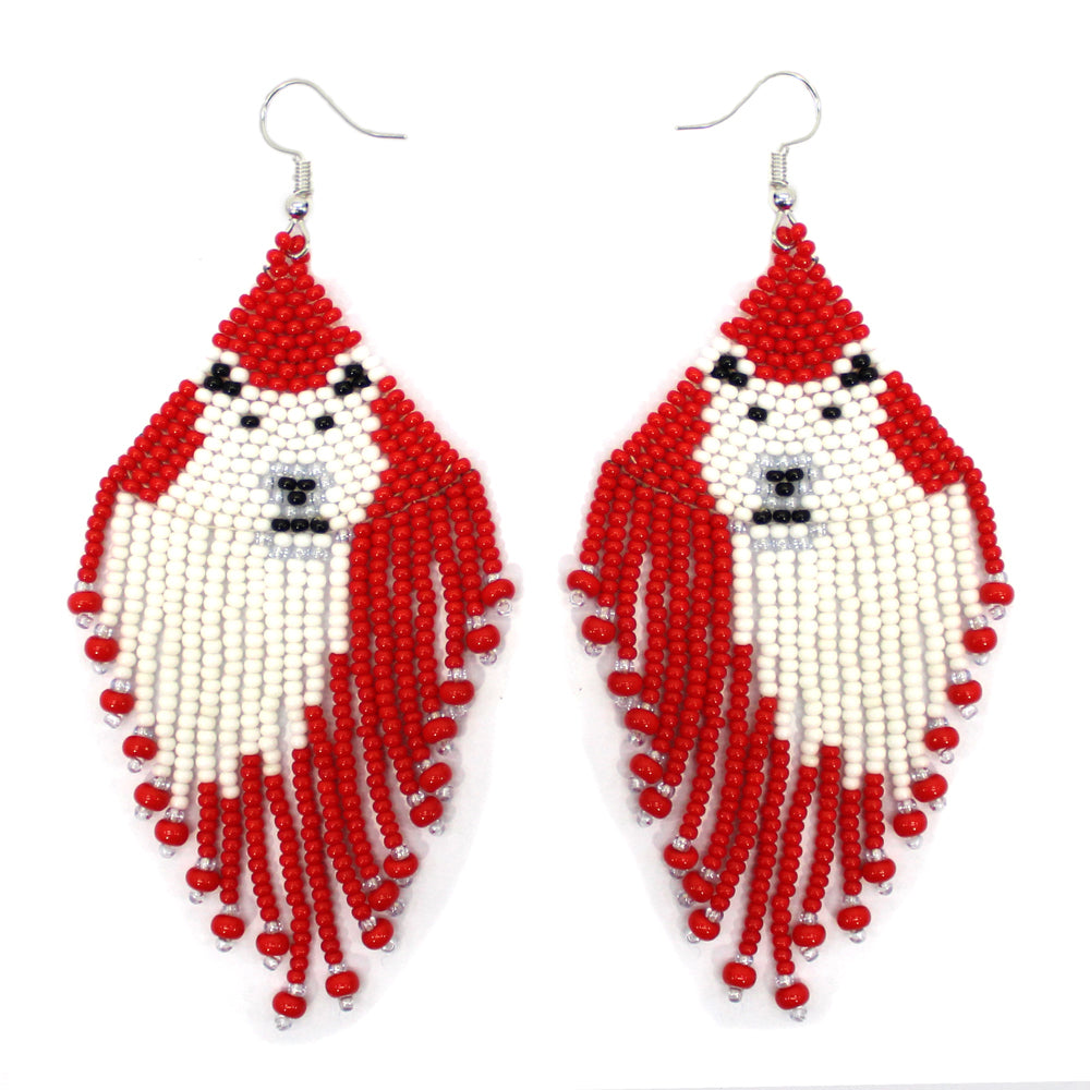 Handmade Red White Seed Beads Polar Bear Beaded Earrings