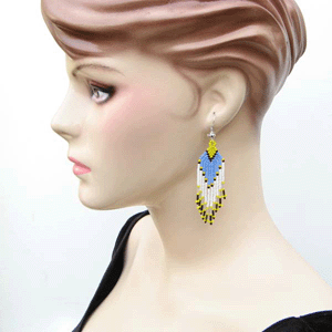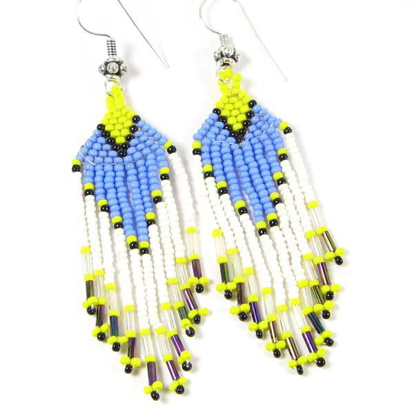 Turquoise White Yellow Seed Beaded Earrings Handmade