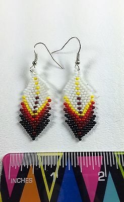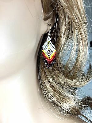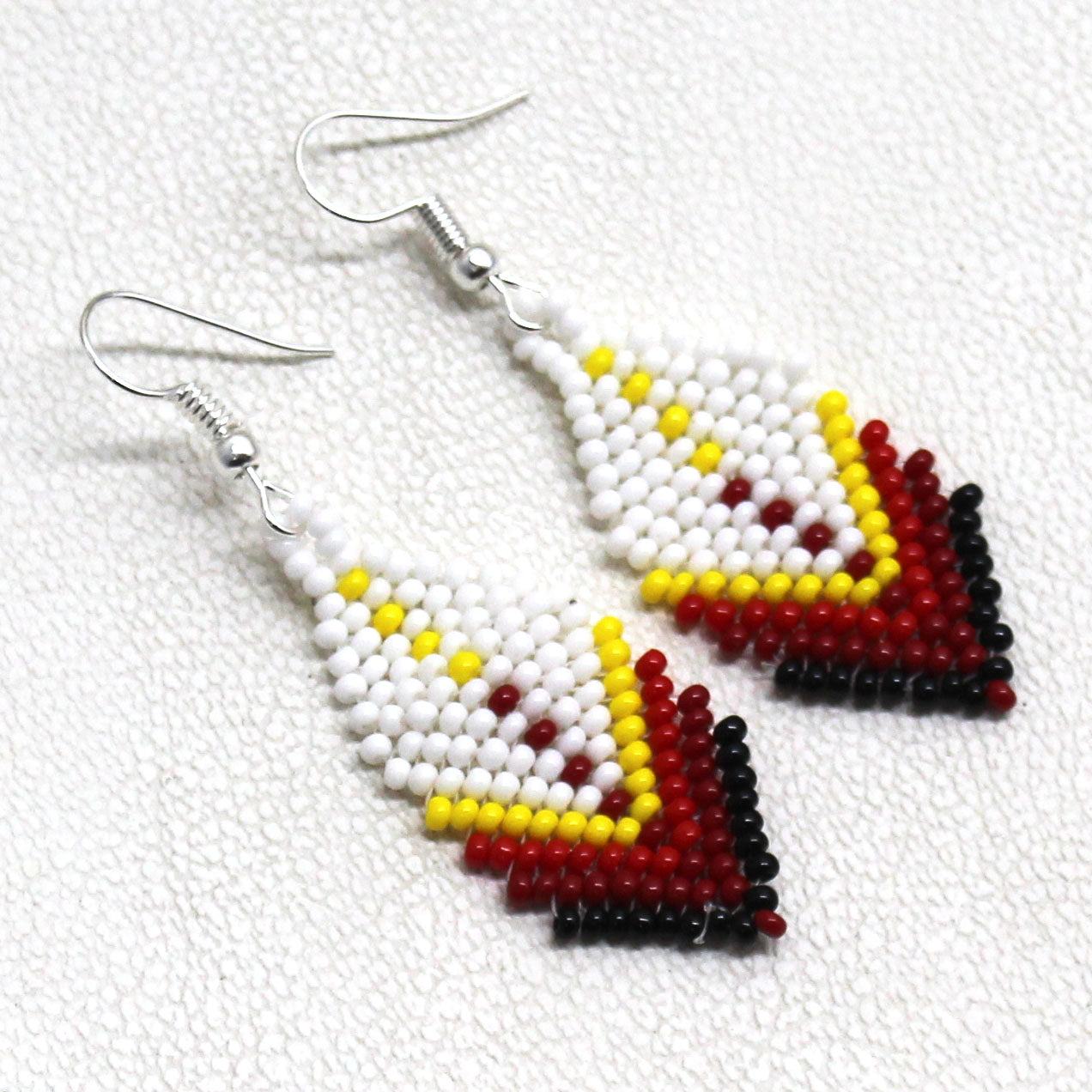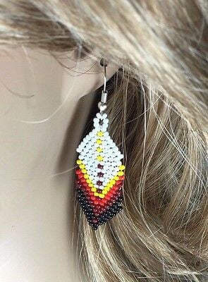 Hand Beaded using small size 11/0 seed beads one bead at a time. Earwires are made of Brass with 0.925 silver plated oxidized.