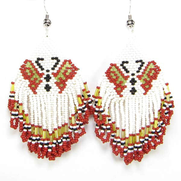 White Red Golden Seed Beaded Butterfly Earrings Handmade